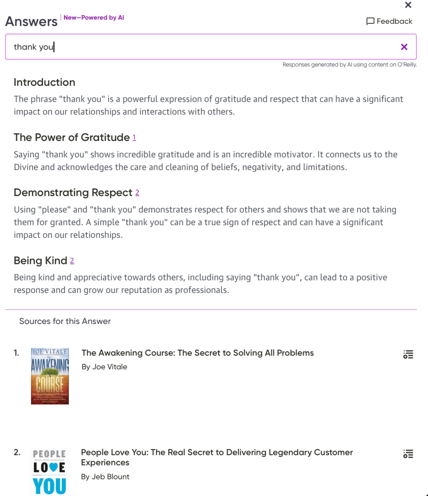 I enjoy reading books on Oreilly learning platform https://learning.oreilly.com/ . For the past month, a new feature on the Oreilly platform called “Answers” has been staring me down, and I haven’t been tempted to click it. Maybe it’s LLM fatigue, or something else I just didn’t give it a try. I do use LLM tools daily but most of these tools I have designed for myself around my workflows.