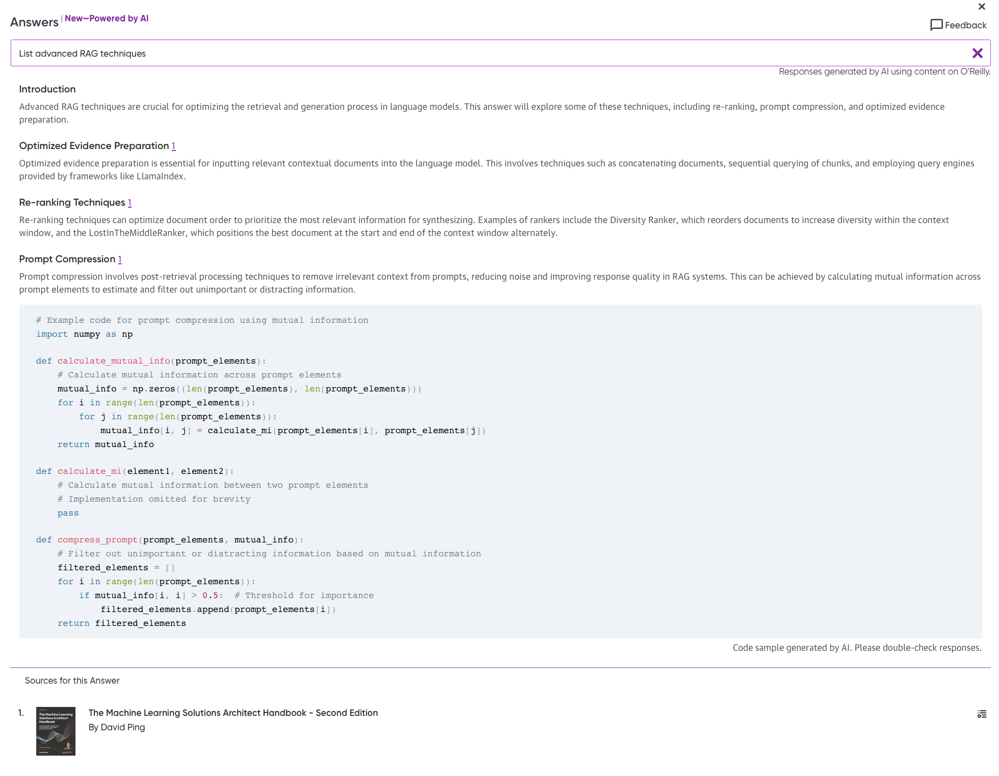 I asked another question list the different memory types in LLM applications where again it listed an incomplete answer from another book. [Building Generative AI-Powered Apps: A Hands-on Guide for Developers](https://learning.oreilly.com/library/view/-/9798868802058)