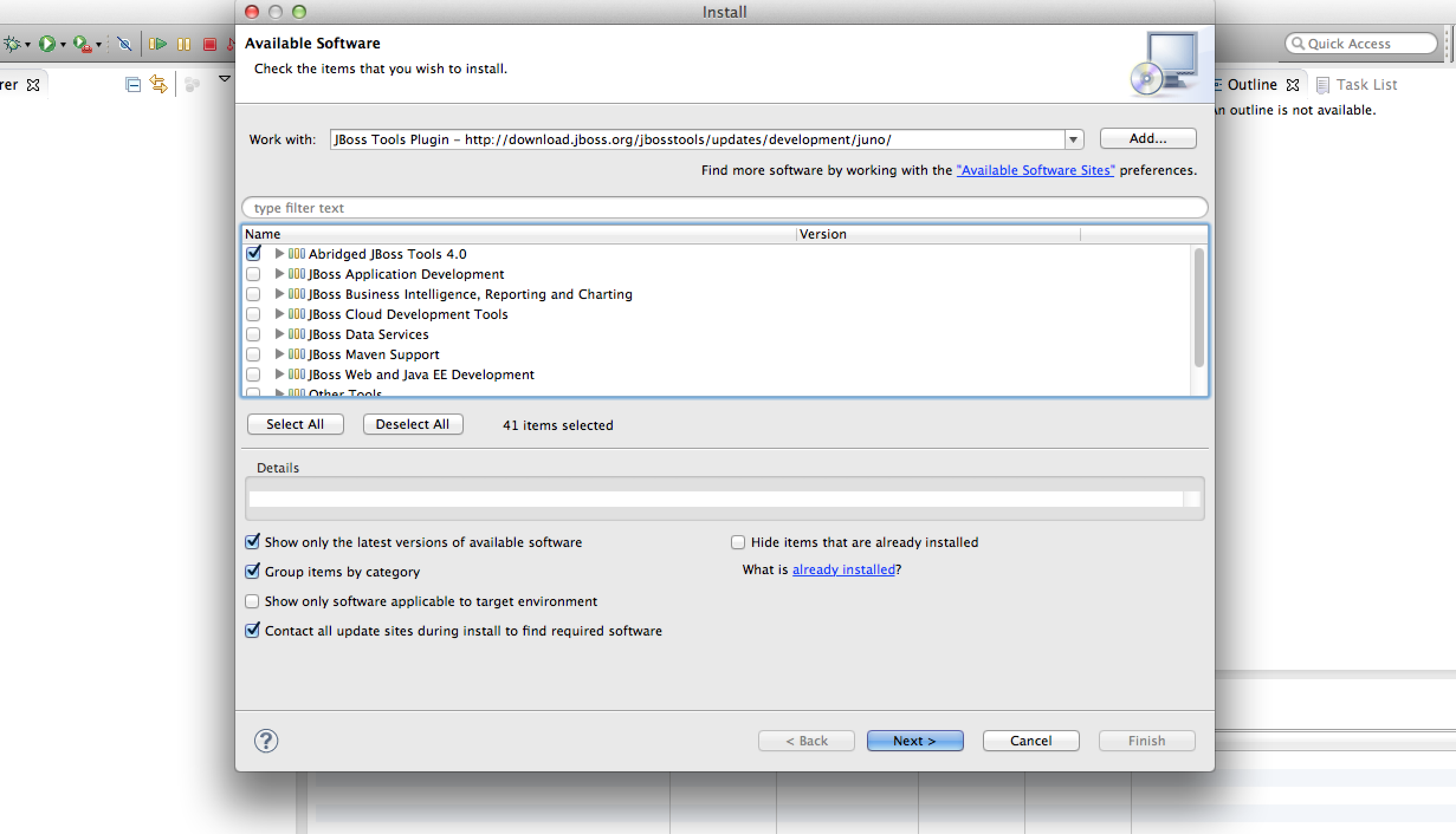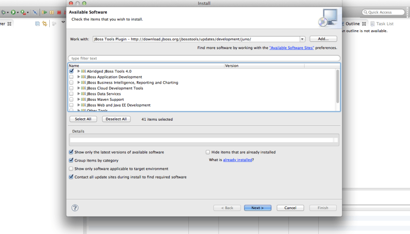 Previous Image Next Image Eclipse JBoss Tools Plugin Selection Eclipse JBoss Tools Plugin Selection Discover more from Shekhar Gulati Subscribe to get the latest posts sent to your email. Type your email… Subscribe